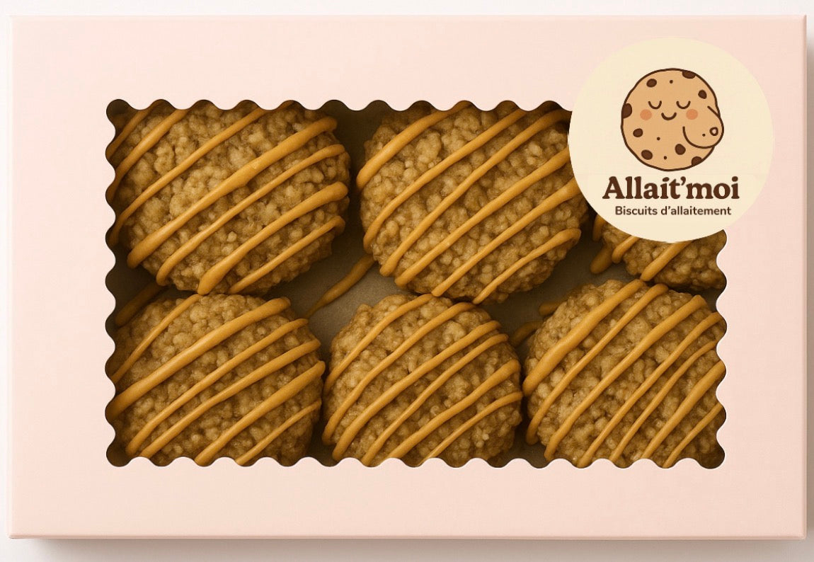 Ingrédients: Flocons d’avoine à grains entiers, farine de blé blanchie enrichie (farine de blé, niacine, fer, thiamine, riboflavine, acide folique), sucre, brisures de caramel (sucre, huile de palme hydrogénée, huile de palme modifiée, huile de soya hydrogénée, ingrédients laitiers, arôme naturel, sel marin, amidon de maïs, sel, lécithine de soya), beurre (crème, sel), levure de bière, cannelle, sel.